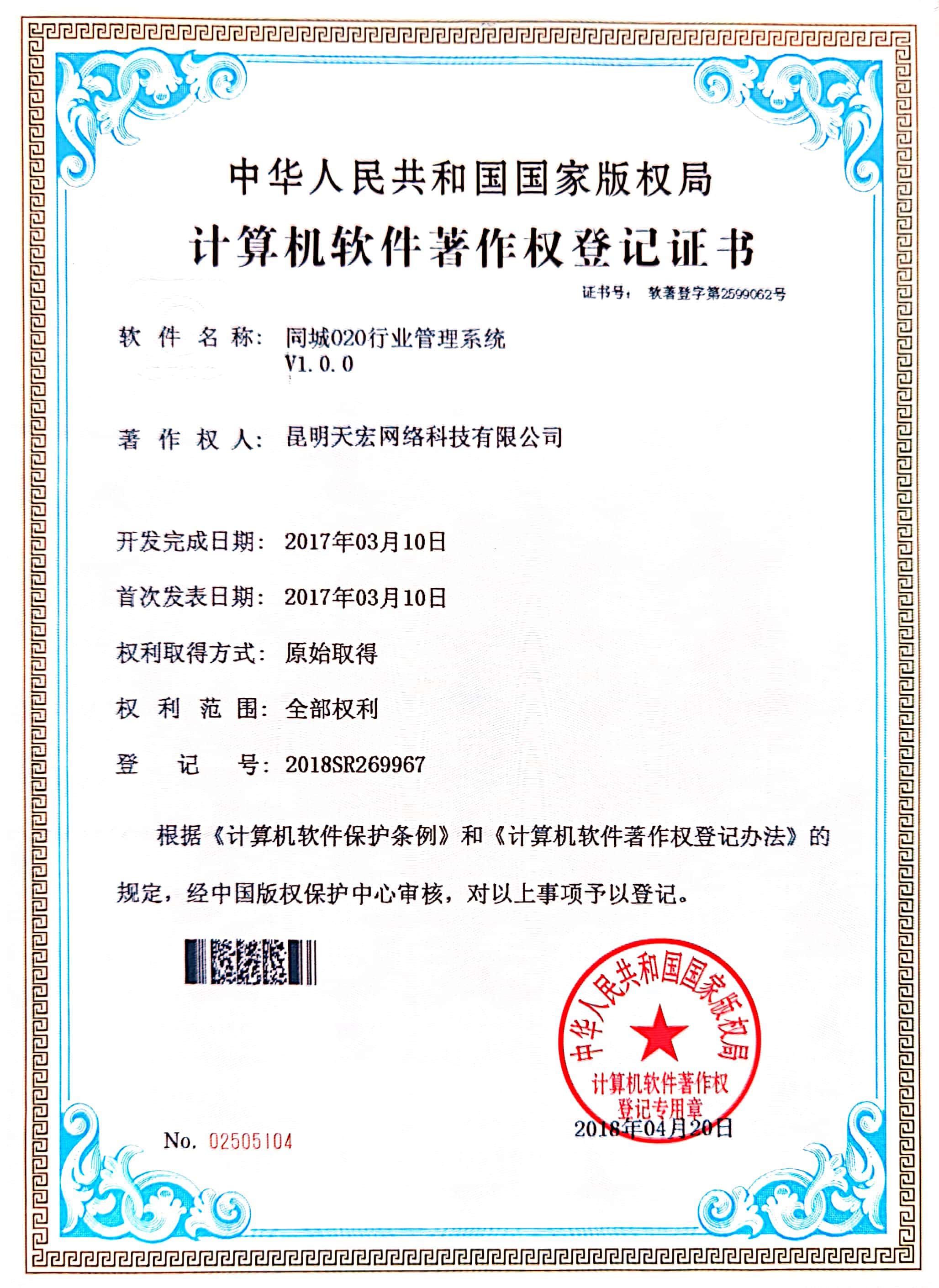 天宏網絡通過不斷的研發創新,現擁有50多項計算機軟著證書,包括多商家點餐系統、門店收銀管理系統、通用OA協同辦公管理系統、智慧商圈運營管理平臺、天宏健康智慧+系統、同城O2O管理系統等。